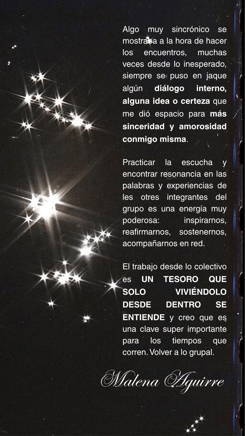 Un espacio-tiempo para sentarte a escuchar sin tantos mandatos y expectativas lo que realmente quiere ser creado a través de vos, alquimizando los bloqueos que se presentan en tu camino.