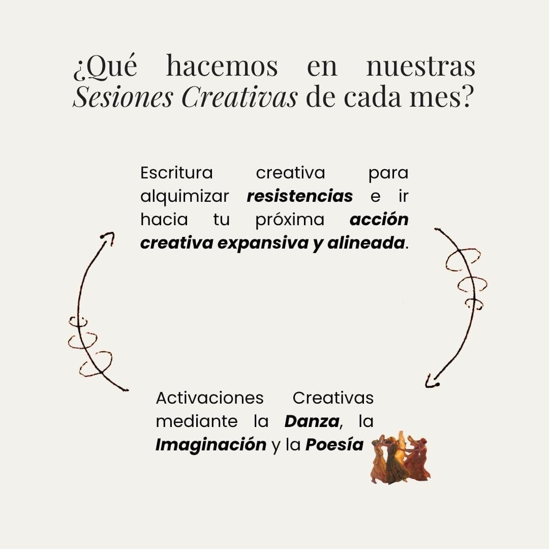 Un espacio-tiempo para 1. sentarte a escuchar sin tantos mandatos y expectativas lo que realmente quiere ser creado a través de vos , 2. alquimizar los bloqueos que impiden tu próximo salto de fé en aquello que viniste a crear. 3. profundizar y expandir tu relación con tu creatividad.